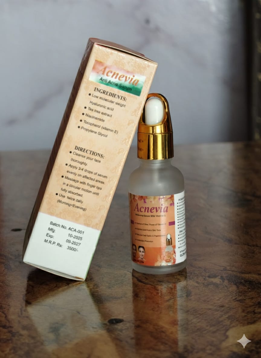 Say goodbye to acne, pimples, and breakouts with Acnevia All Acne Serum. Formulated with salicylic acid, tea tree extract, and niacinamide, this powerful serum targets the root causes of acne, unclogs pores, and soothes irritated skin for a clearer and healthier complexion.